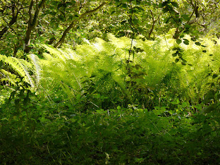 Nur die Farne spielen mit den verirrten Sonnenstrahlen, die durch das Laub tanzen.